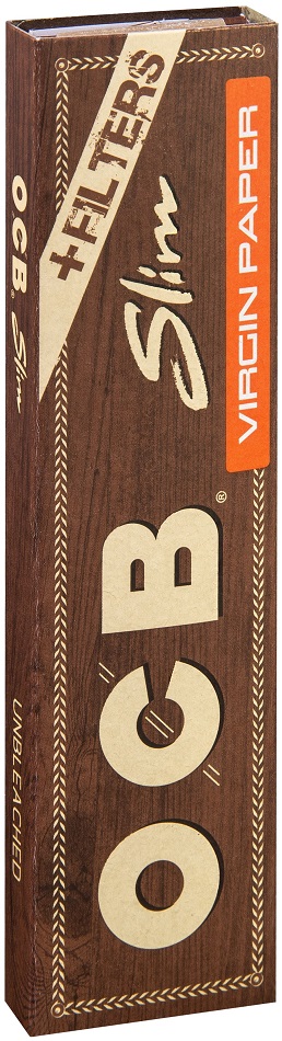 OCB Unbleached Virgin Slim Paper + 32 Filter Tips Ultra Fein aus Cellulose 4,4x1
