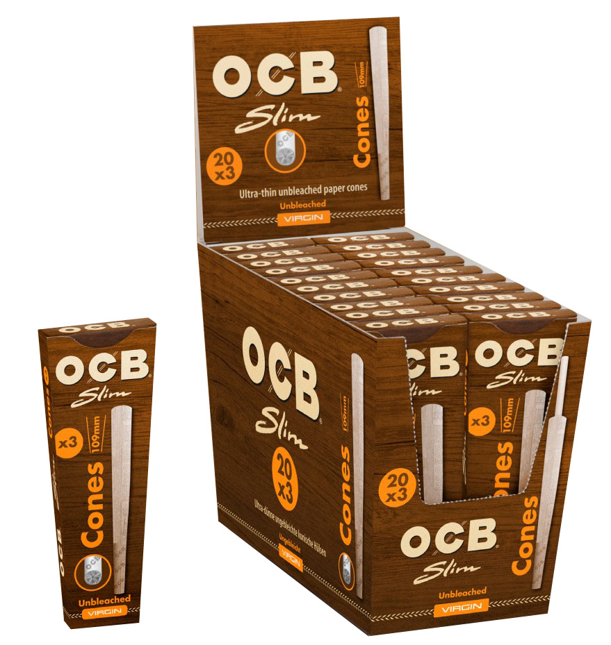 OCB Virgin Cones Slim Unbleached à 3 Cones je packung in 20er T-Dsp.