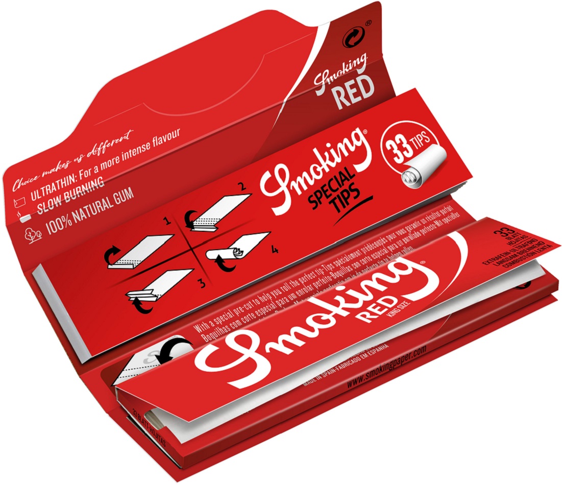 Smoking Red King Size + Tips 24 Heftchen 33 Blatt (108x44mm)+33 Tips im 24er Dsp.