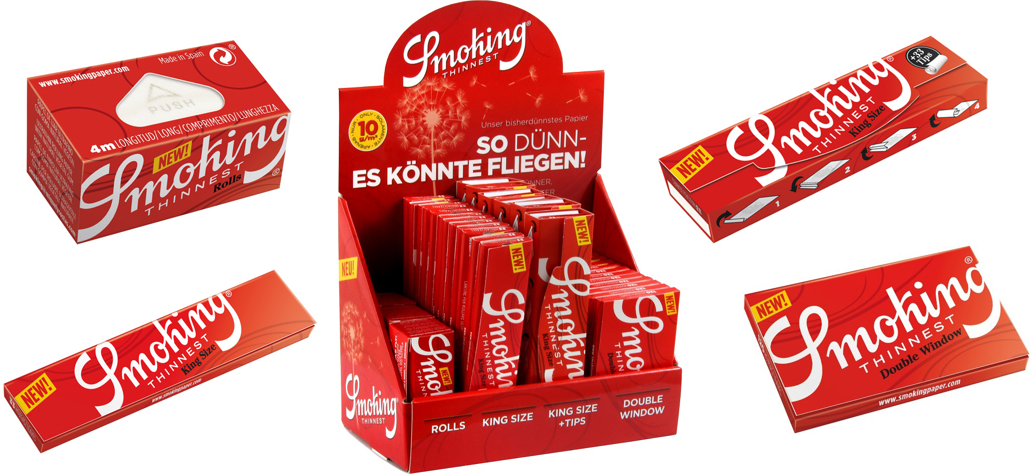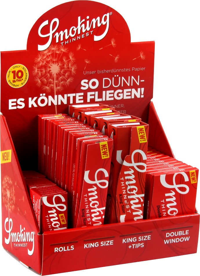 Smoking Thinnest MIX 3x Smoking Rolls, 12x -King Size, 6x -King Size + Tips, 12x -Double Window 4/s in 33er T-Dsp.