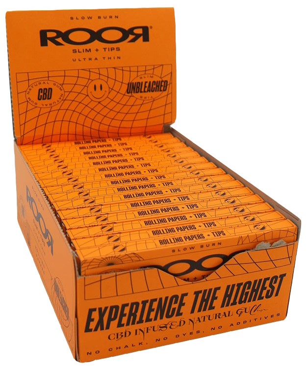 ROOR CBD Zigarettenpapier Unbleached, Ultra thin + Tips, 32 Blättchen pro Heftchen im 32er Dsp.