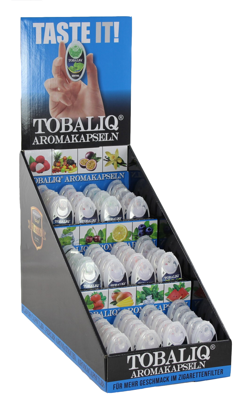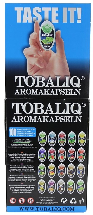 Aroma Kapseln TobaliQ (Menthol, Black Ice, Mint Cherry, Mint, Mint Lemon, Blueberry Mint, Strawberry Mint, Ice Strawberry, Litchi, Watermelon Mint, Apple Mint, Mango, Ice Cola, Whisky, Energy, Vanilla, Passion Fruit, Coconut, Mix Flavor, Menthol)60er T-Dsp.