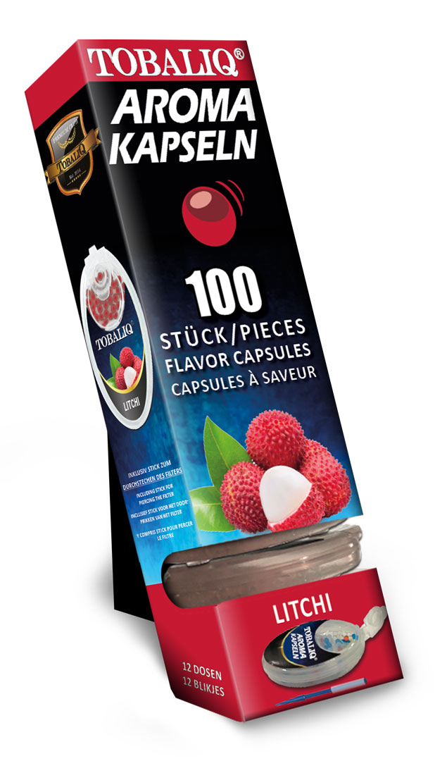 LITCHI Aromakapseln Tobaliq Packung mit 100 Kapseln für Zigaretten, Zigarillos und IQOS Sticks 12er T-Dsp
