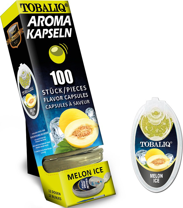 MELON ICE Aromakapseln Tobaliq Packung mit 100 Kapseln für Zigaretten, Zigarillos und IQOS Sticks 12er T-Dsp