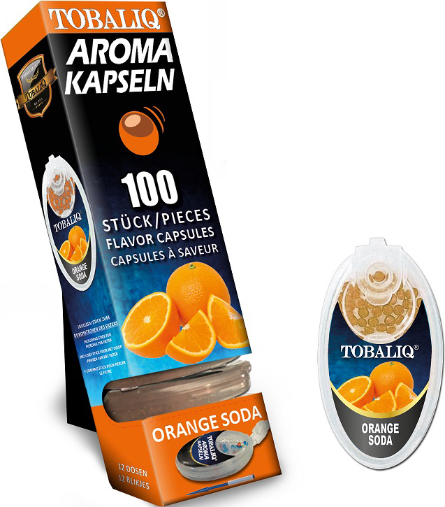 ORANGE SODA Aromakapseln Tobaliq Packung mit 100 Kapseln für Zigaretten, Zigarillos und IQOS Sticks 12er T-Dsp