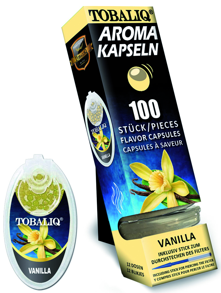 VANILLA Aromakapseln Tobaliq Packung mit 100 Kapseln für Zigaretten, Zigarillos