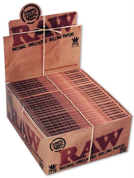 RAW Classic King Size Slim Papier, 100% ungebleicht, 110x44mm, 32 Blatt 50 Heftc