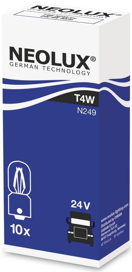 Leuchtmittel Neolux N249 - T4W 24V - 4W Orginal LKW Schlusslicht/Kennzeichen/Park- / Postionslicht- Standard BA9s 10er Faltschachtel (Werkstattausführung)