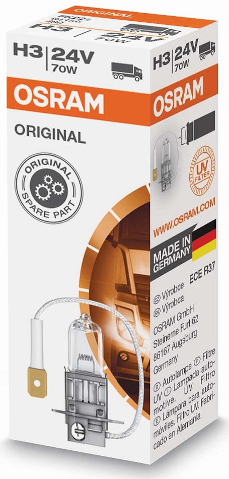Osram H3 24V - 70W LKW Orginal Halogen Leuchtmittel Abblendlicht/Fernlicht - Standard PK22s 1er Faltschachtel