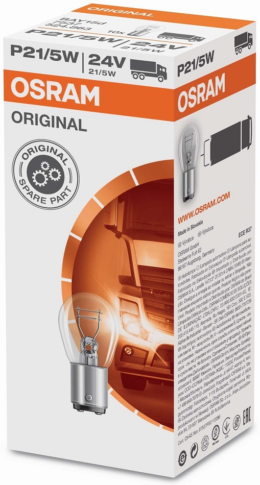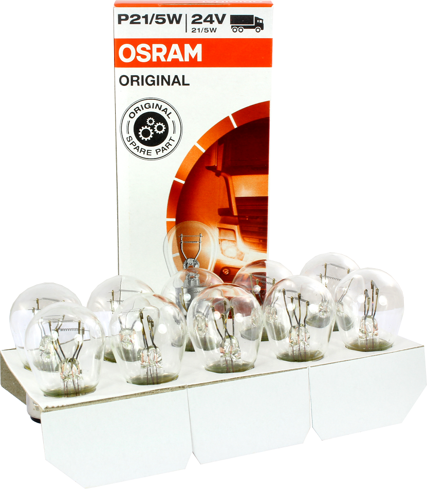Osram P21/5W 24V - 21/5W Orginal LKW Nebelschlusslicht/Brems- und Schlusslicht- Standard BAY15d 10er Faltschachtel (Werkstattausführung)