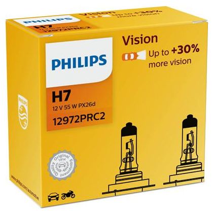 Philips Vision H7 12V Scheinwerferbirne 55W PX26d Vision +30% 2er Set in Farbbox Blister(PH 12972PRC2 )