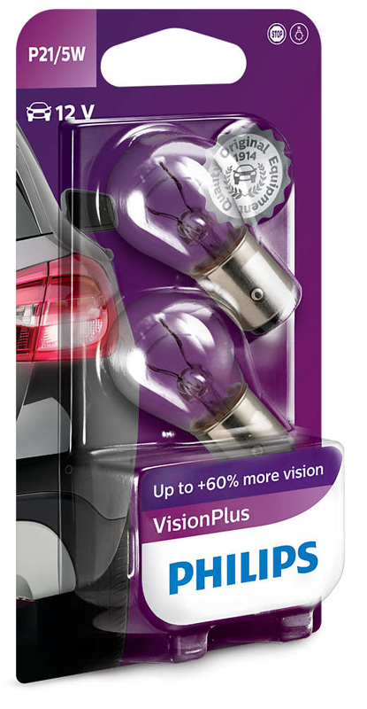 Philips Steckbirne P21/5W 12V 21/5W 12V BAY15d VisionPlus +60% 2st.Blister(12499VPB2)