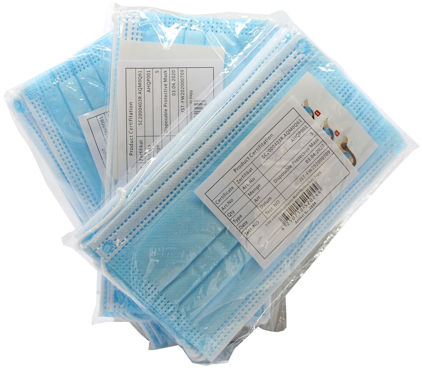 Mund Nasen Maske 3-lagig BLAU/WEISS mit Nasenbügel&Ohrschlaufen Einheitsgröße 10x5 Stück(5er Pack) in 50er Box