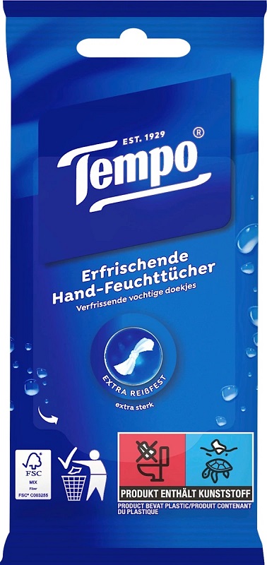 Tempo Feuchttücher Freh To Go Classic - erfrischende Hand-Feuchttücher