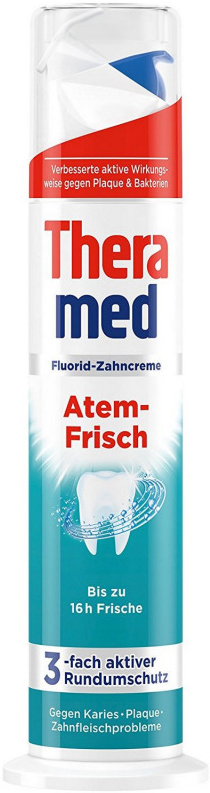 Theramed Zahncreme Spender Atem-Frisch 100ml Fluorid-Zahncreme bis zu 16h Frische, 3-fach aktiver Schutz, gegen Karies, Plaque & Zahnfleischprobleme