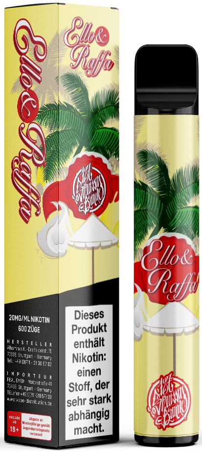 187 Strassenbande E-Shisha ELLO & RAFFA (Vanille, Zitrone und Mandeln) - Nikotin 2ml Liquid Nikotin 20mg/ml ca. 600 Züge 500mAh Einweg-Pos System TPD konform 10er T-Dsp.(mit Steuerbanderole)