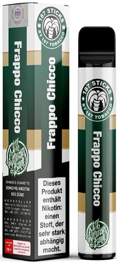 187 Strassenbande E-Shisha FRAPPO CHICCO (Eis Latte Machiato) - Nikotin 2ml Liquid Nikotin 20mg/ml ca. 600 Züge 500mAh Einweg-Pos System TPD konform 10er T-Dsp.(mit Steuerbanderole)