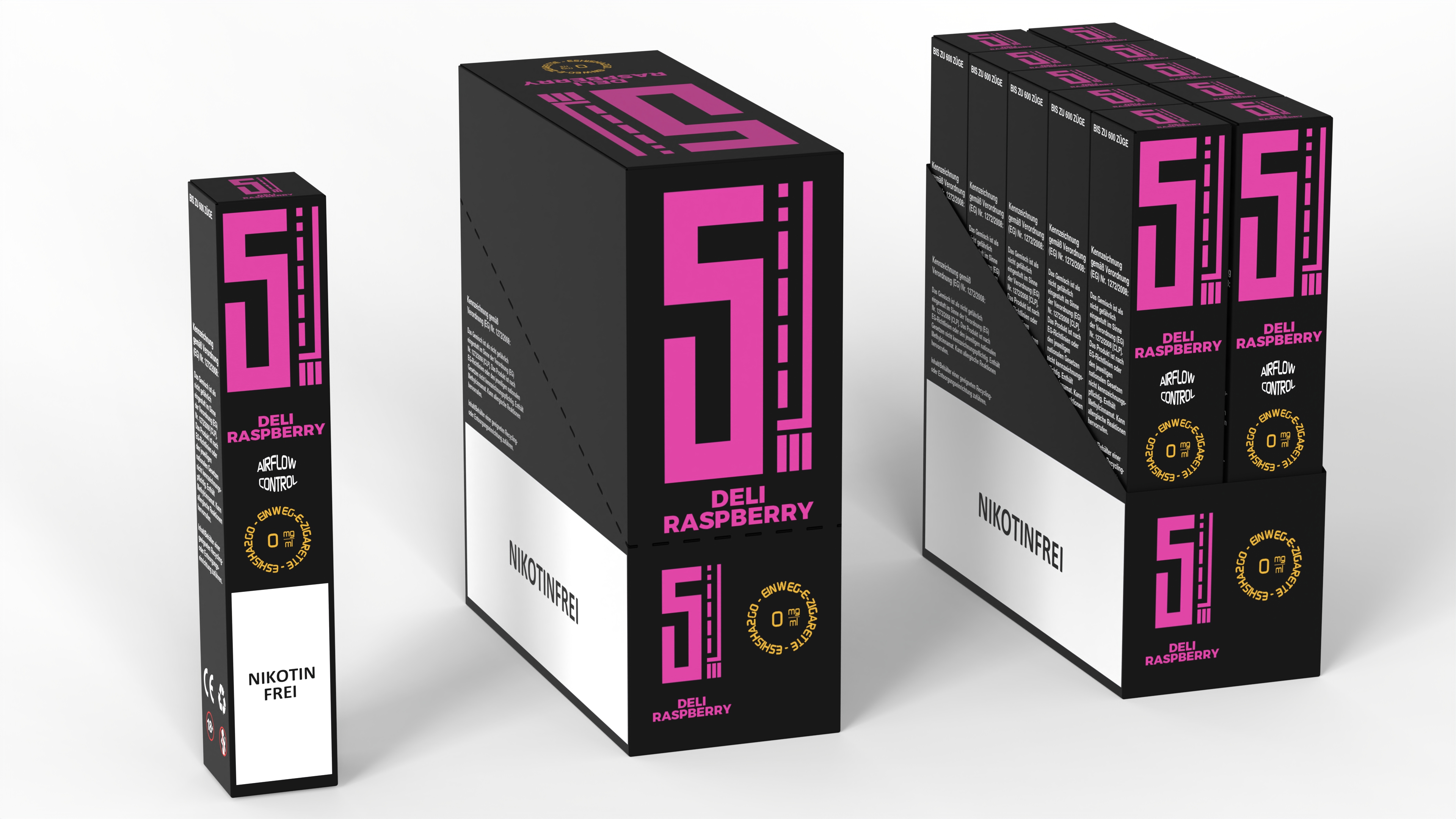 5EL E-Shisha DELI RASPBERRY ca. 600 Züge - NO Nikotin 550mAh Einweg-Pos System TPD konform 10er T-Dsp.(mit Steuerbanderole)