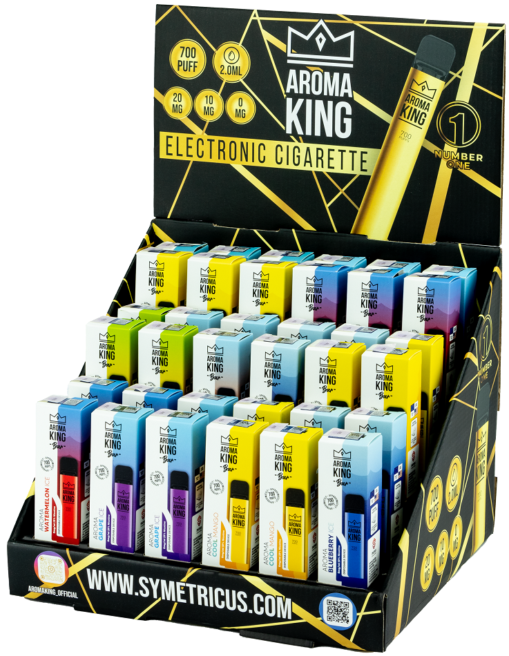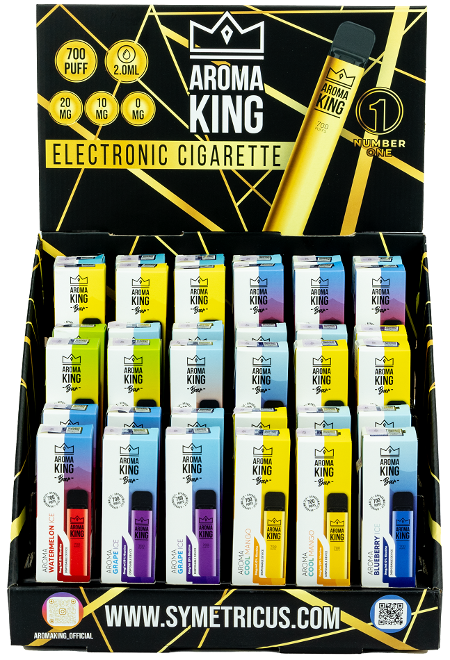 Aroma King E-Shisha MIX Display Nikotin und NO Nikotin ca. 700 Züge - 2ml Liquid Nic-Salt 20mg/0mg pro ml 550mAh Einweg-Pos System TPD konform 36er T-Dsp.(mit Steuerbanderole)