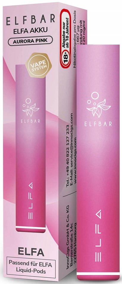 Elfbar ELFA CP Basisgerät AURORA-PINK - mit Kindersicherung, Akku Kapazität: 500mAh, aufladbar mit USB-C Ladekabel, magnetische Pod Aufnahme in 10er T-Dsp.(kompatibel mit allen ELFA Pods)