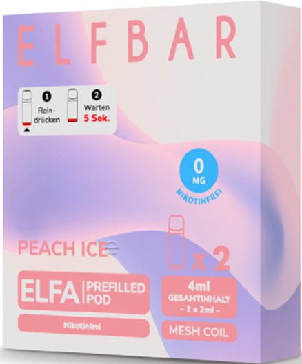 Elfbar ELFA CP Prefilled Pod PEACH ICE ca. 600 Züge - ohne Nikotin 2ml Liquid Nikotin 0mg/ml Prefilled-Pod System TPD konform 2er Pack in 10er T-Dsp.(kompatibel mit allen ELFA Basisgeräten)(mit Steuerbanderole)