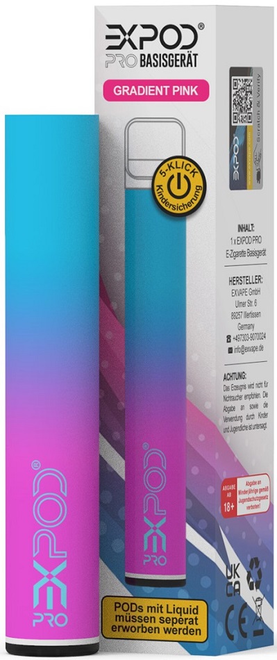 Expod PRO Basisgerät PINK - mit Kindersicherung, Akku Kapazität: 400mAh, aufladbar mit USB-C Ladekabel, magnetische Pod Aufnahme in 10er T-Dsp.(kompatibel mit allen Expod PRO Pods)