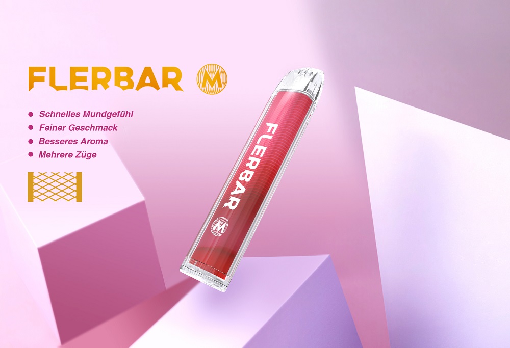 Flerbar M 600 E-Shisha BLUEBERRY ca. 600 Züge - mit Kindersicherung, Nikotin 2ml Liquid Nikotin 20mg/ml 550mAh Einweg-Pos System TPD konform 10er T-Dsp.(mit Steuerbanderole)