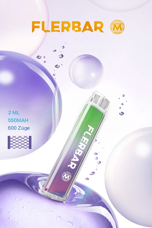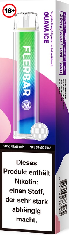 Flerbar M 600 E-Shisha GUAVA ICE ca. 600 Züge - mit Kindersicherung, Nikotin 2ml Liquid Nikotin 20mg/ml 550mAh Einweg-Pos System TPD konform 10er T-Dsp.(mit Steuerbanderole)