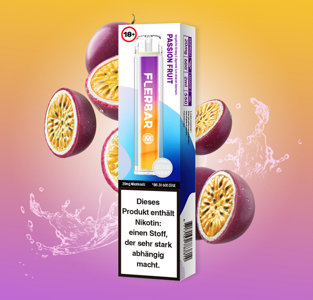 Flerbar M 600 E-Shisha PASSION FRUIT ca. 600 Züge - mit Kindersicherung, Nikotin