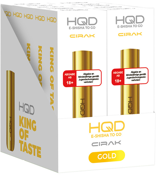 HQD Cirak Basisgerät GOLD - mit Kindersicherung, Akku Kapazität: 450mAh, aufladbar mit USB-C Ladekabel (inklusive), magnetische Pod Aufnahme im 10er T-Dsp.(kompatibel mit allen HQD Cirak Pods)