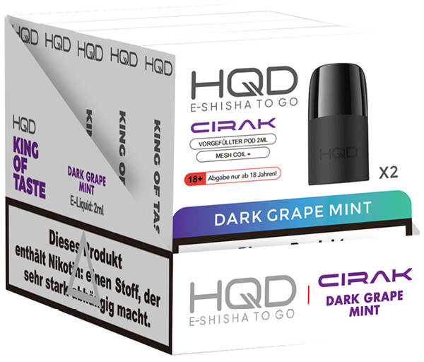 HQD Cirak Prefilled Pod DARK GRAPE MINT ca. 600 Züge - Nikotin 2ml Liquid Nikotin 18mg/ml Prefilled-Pod System TPD konform 2er Pack im 5er T-Dsp.(kompatibel mit allen Cirak Basisgeräten)(mit Steuerbanderole)