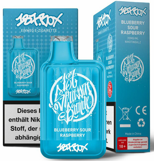 187 Strassenbande Box E-Shisha BLUEBERRY SOUR RASPBERRY - Nikotin 2ml Liquid Nikotinsalz 20mg/ml ca. 600 Züge 550mAh Einweg-Pos System TPD konform 10er T-Dsp.(mit Steuerbanderole)