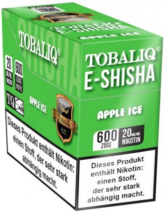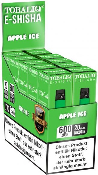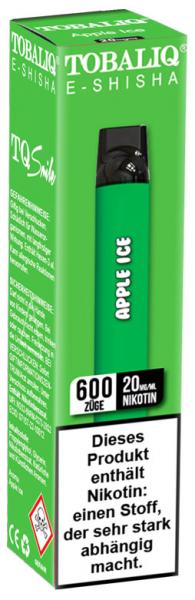 TobaliQ E-Shisha TQ-Smile E-Shisha APPLE ICE ca. 600 Züge - Nikotin 2ml Liquid Nikotin 20mg/ml 550mAh Einweg-Pos System TPD konform 10er T-Dsp.(mit Steuerbanderole)