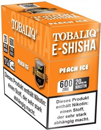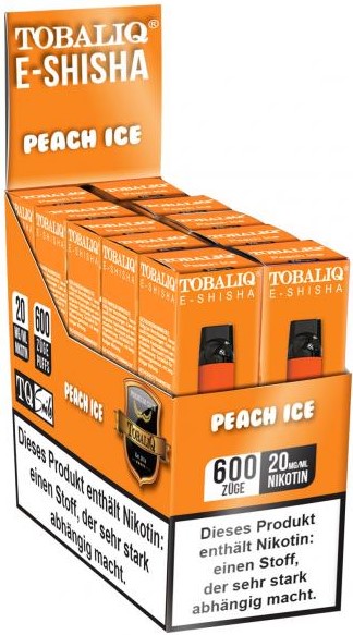TobaliQ E-Shisha TQ-Smile E-Shisha PEACH ICE ca. 600 Züge - Nikotin 2ml Liquid Nikotin 20mg/ml 550mAh Einweg-Pos System TPD konform 10er T-Dsp.(mit Steuerbanderole)