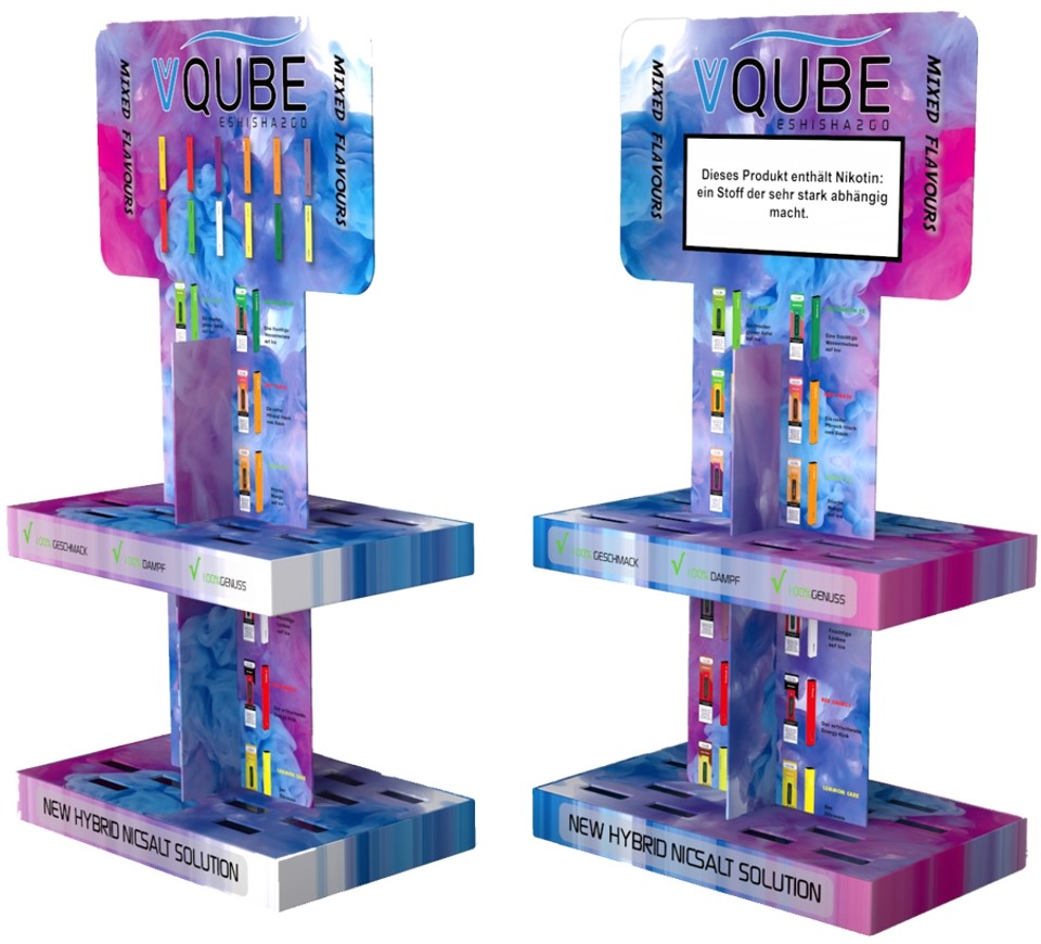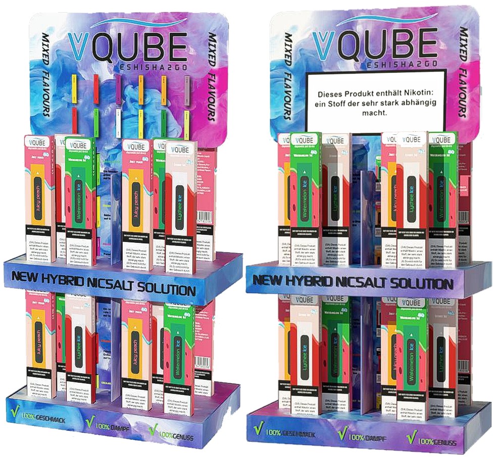 VQube E-Shisha ToGo 2x12er MIX ca. 350 Züge - 1,3ml Liquid mit Hybrid-Nikotin 18mg/ml 300mAh 24er T-Dsp.(mit Steuerbanderole) (je 2x: Lychee Ice, Mango Ice, Fresh Apple, Fresh Orange, Passion Fruit, Grape Ice, Watermelon Ice, Juicy Peach, Strawberry Ice, Red Energy, Creamy Waffel, Lemon Cake)