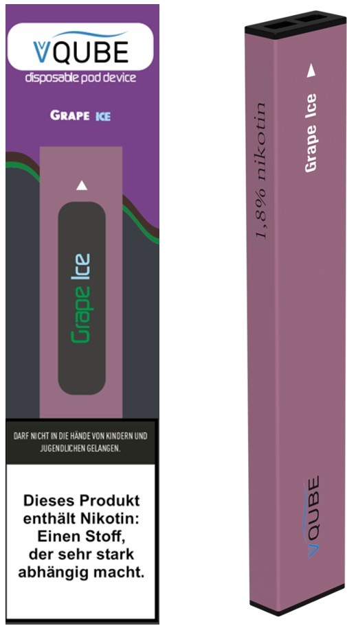 VQube E-Shisha ToGo GRAPE ICE 1,3ml ca. 350 Züge - Liquid mit Hybrid-Nikotin 18mg/ml 300mAh 5er T-Dsp.(mit Steuerbanderole)