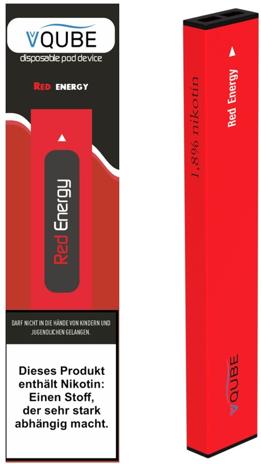 VQube E-Shisha ToGo RED ENERGY ca. 350 Züge - 1,3ml Liquid mit Hybrid-Nikotin 18mg/ml 300mAh 5er T-Dsp.(mit Steuerbanderole)