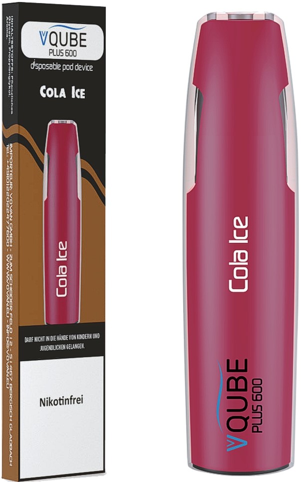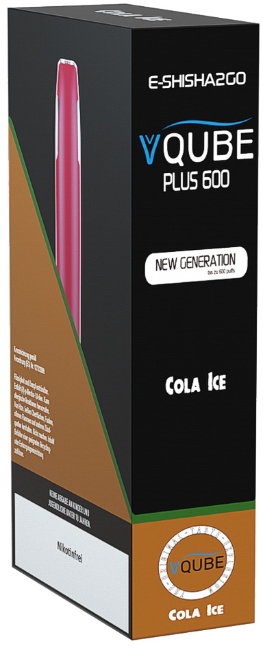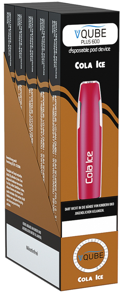 Vovan VQube Plus600 E-Shisha COLA ICE - NO Nikotin ca. 600 Züge 400mAh Einweg-Pos System TPD konform 5er T-Dsp.(mit Steuerbanderole)