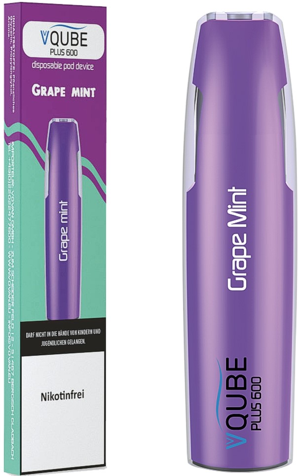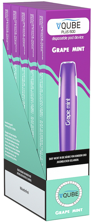 Vovan VQube Plus600 E-Shisha GRAPE MINT - NO Nikotin ca. 600 Züge 400mAh Einweg-Pos System TPD konform 5er T-Dsp.(mit Steuerbanderole)