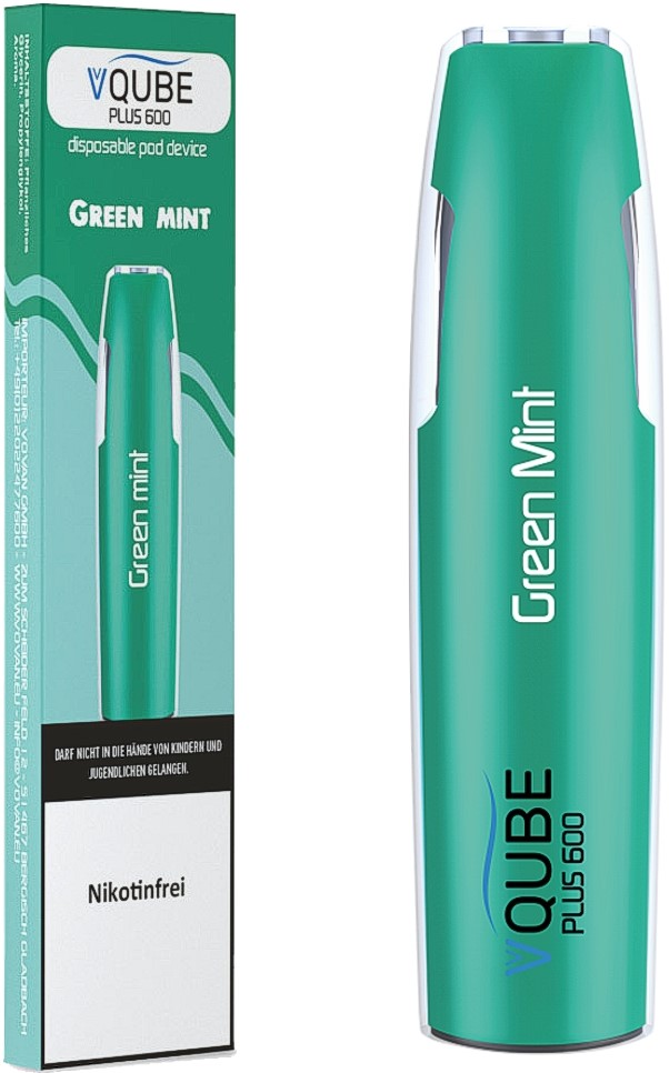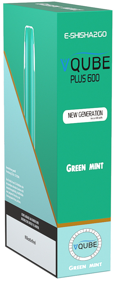 Vovan VQube Plus600 E-Shisha GREEN MINT - NO Nikotin ca. 600 Züge 400mAh Einweg-Pos System TPD konform 5er T-Dsp.(mit Steuerbanderole)