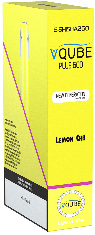 Vovan VQube Plus600 E-Shisha LEMON CHILL - NO Nikotin ca. 600 Züge 400mAh Einweg-Pos System TPD konform 5er T-Dsp.(mit Steuerbanderole)