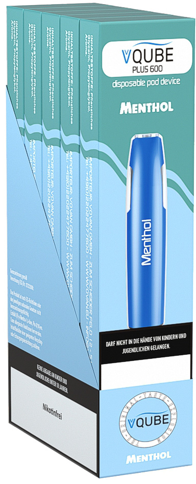 Vovan VQube Plus600 E-Shisha MENTHOL - NO Nikotin ca. 600 Züge 400mAh Einweg-Pos System TPD konform 5er T-Dsp.(mit Steuerbanderole)