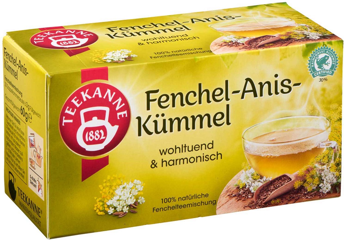 Teekanne Natur Fenchel-Anis-Kümmel wohltuend & harmonisch 100& natürliche Fenchelteemischung 20 einzeln verpackte Doppelklammerbeutel in 60g Packung