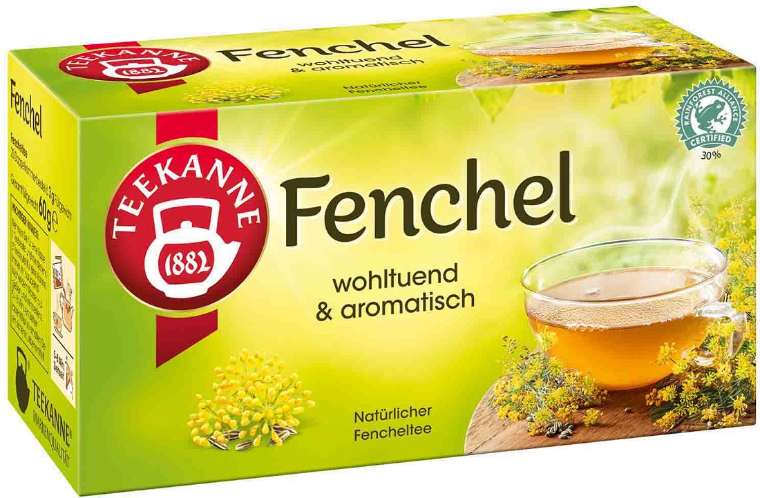 Teekanne Natur Fenchel wohltuend & aromatisch 20 einzeln verpackte Doppelklammerbeutel in 60g Packung