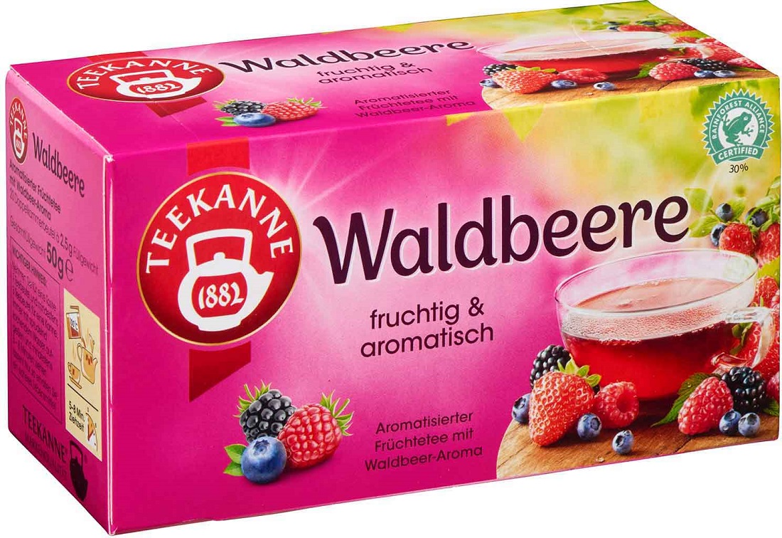 Teekanne Natur Waldbeere fruchtiger & aromatischer Genuss Früchtetee mit Waldbeer-Aroma 20 einzeln verpackte Doppelklammerbeutel in 50g Packung