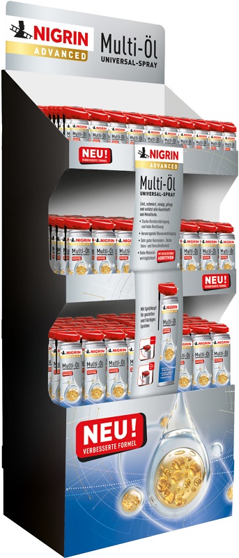 Nigrin MULTIÖL Verkaufsaufsteller Groß 150tlg. - Bodendisplay bestückt mit: 54x Advanced Multi-Öl 100ml, 48x Advanced Multi-Öl 250ml, 48x Advanced Multi-Öl 400ml