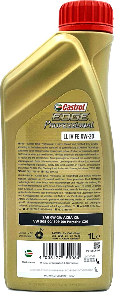 Castrol Edge Professional 0W-20 FE LL04 E4 1Liter (freigegeben für: Porsche C20 - VW 508 00 - 509 00)